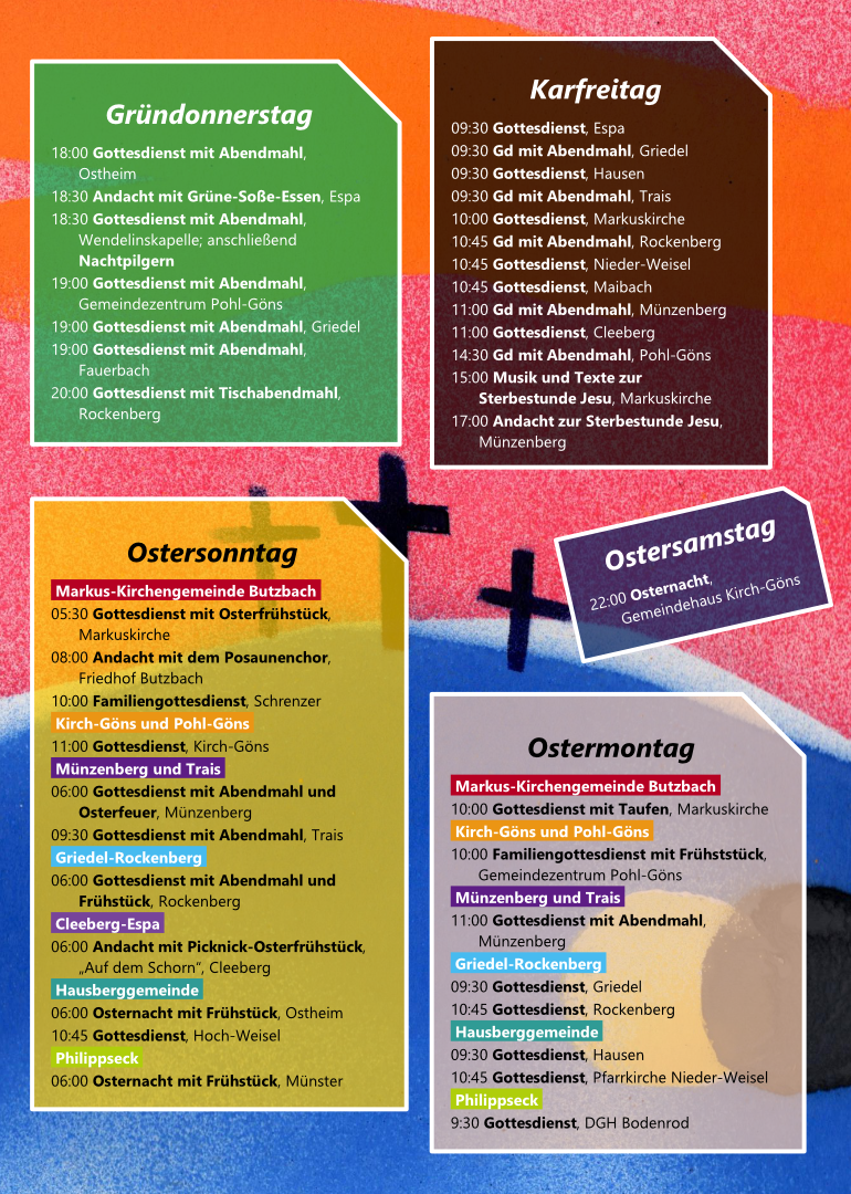 Am Ostersonntag treffen wir uns auf dem Parkplatz vor dem Freibad auf dem Butzbacher Schrenzer und feiern einen …