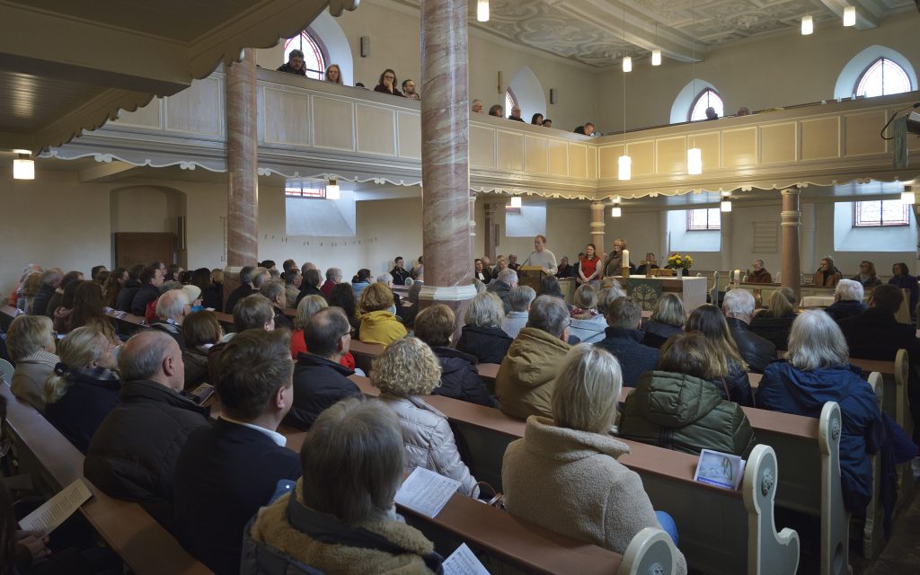 Abgerundet wurde das Wochenende mit dem Gründungsgottesdienst der Gesamtkirchengemeinde in der Pfarrkirche in Nieder-Weisel unter dem Motto der Jahreslosung „Siehe, ich mache alles neu“. Pröpstin Anke Spory, Dekan Volkhard Guth und ein Team aus Pfarrern, Pfarrerinnen und Ehrenamtlichen der Gemeinde feierten gemeinsam mit vielen Besucherinnen und Besuchern unter Begleitung der Dekanatskantorei diesen besonderen Gottesdienst und die Segnung der Mitglieder des neuen Gesamtkirchenvorstands. Im Anschluss wurde bei einem lockeren Sektempfang auf die Gesamtkirchengemeinde angestoßen.