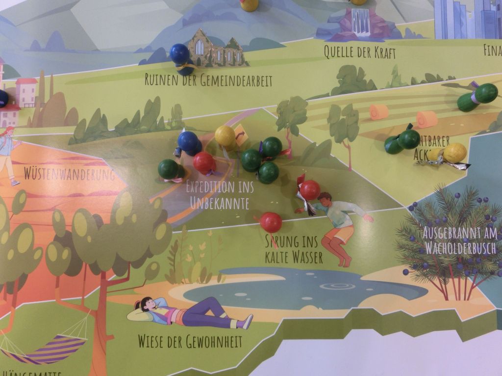 Auf einer „Wüstenwanderung“, bei einem „Sprung ins kalte Wasser“ oder doch eher auf dem „Berg der Visionen“ – wo befinden wir uns? Dies war eine einleitende Frage zum Wochenende der Ortskirchenausschüsse (ehemals Kirchenvorstände) der Gesamtkirchengemeinde Nördliche Wetterau.